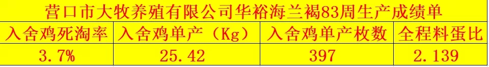 *83周產蛋率維持在83.71%,較海蘭標準上線高出8.71%。