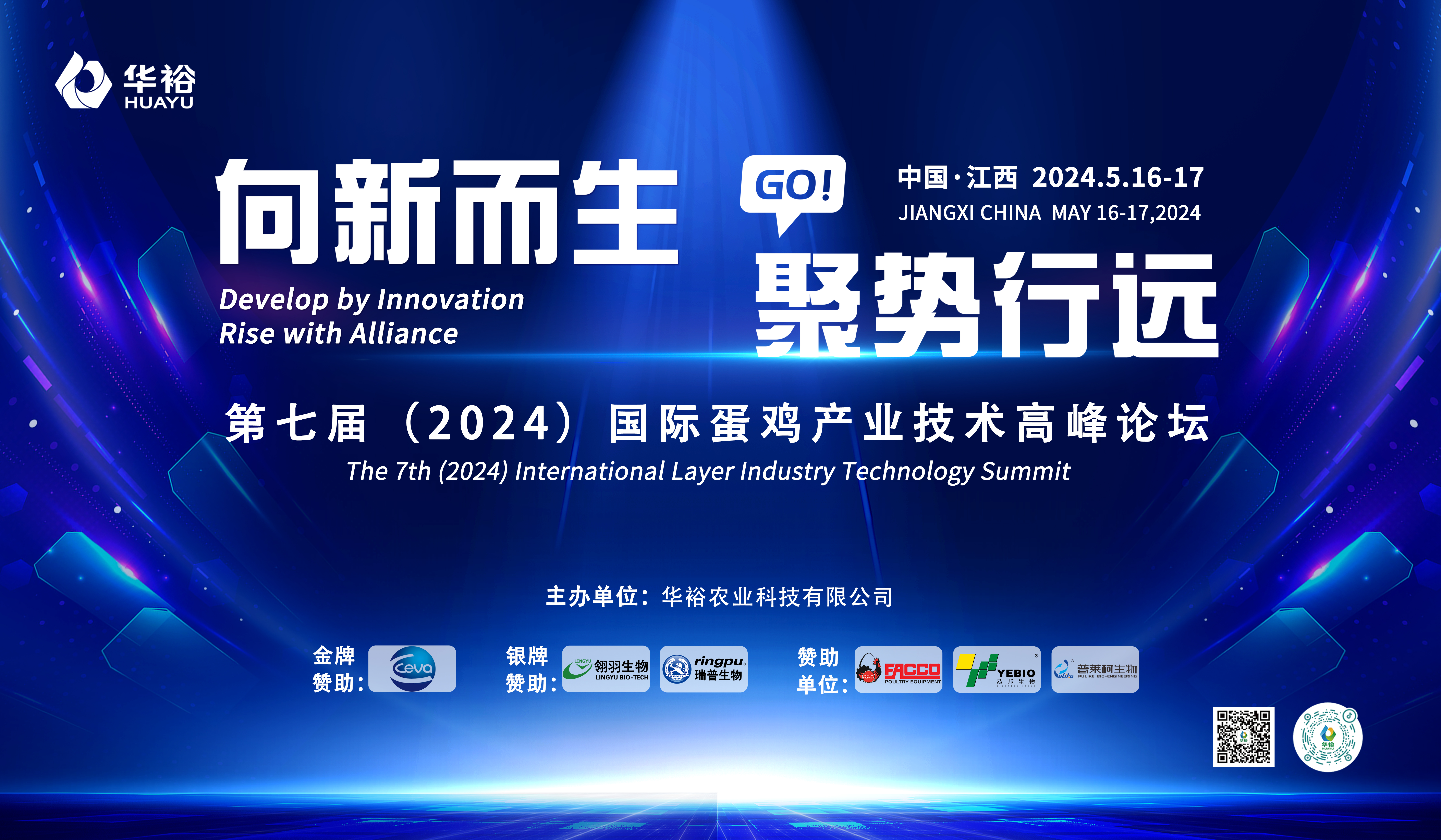 2024年5月16日——17日,由華裕農(nóng)業(yè)科技有限公司主辦的第七屆(2024)國際蛋雞產(chǎn)業(yè)技術高峰論壇在江西南昌隆重召開。本次大會以“向新而生,聚勢行遠”為主題,來自全球的800多名、線上近萬名行業(yè)知名領軍者、專家和合作伙伴齊聚...
