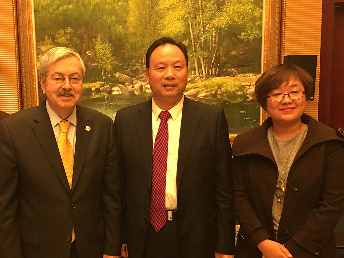美國前艾奧瓦州州長美國駐華大使特里·布蘭斯塔德(左一)與董事長王連增合影